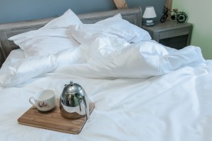 Materiał posiada atesty bezpieczne dla skóry, nie wywołuje alergii i zapewnia optymalną cyrkulację powietrza podczas snu gości.