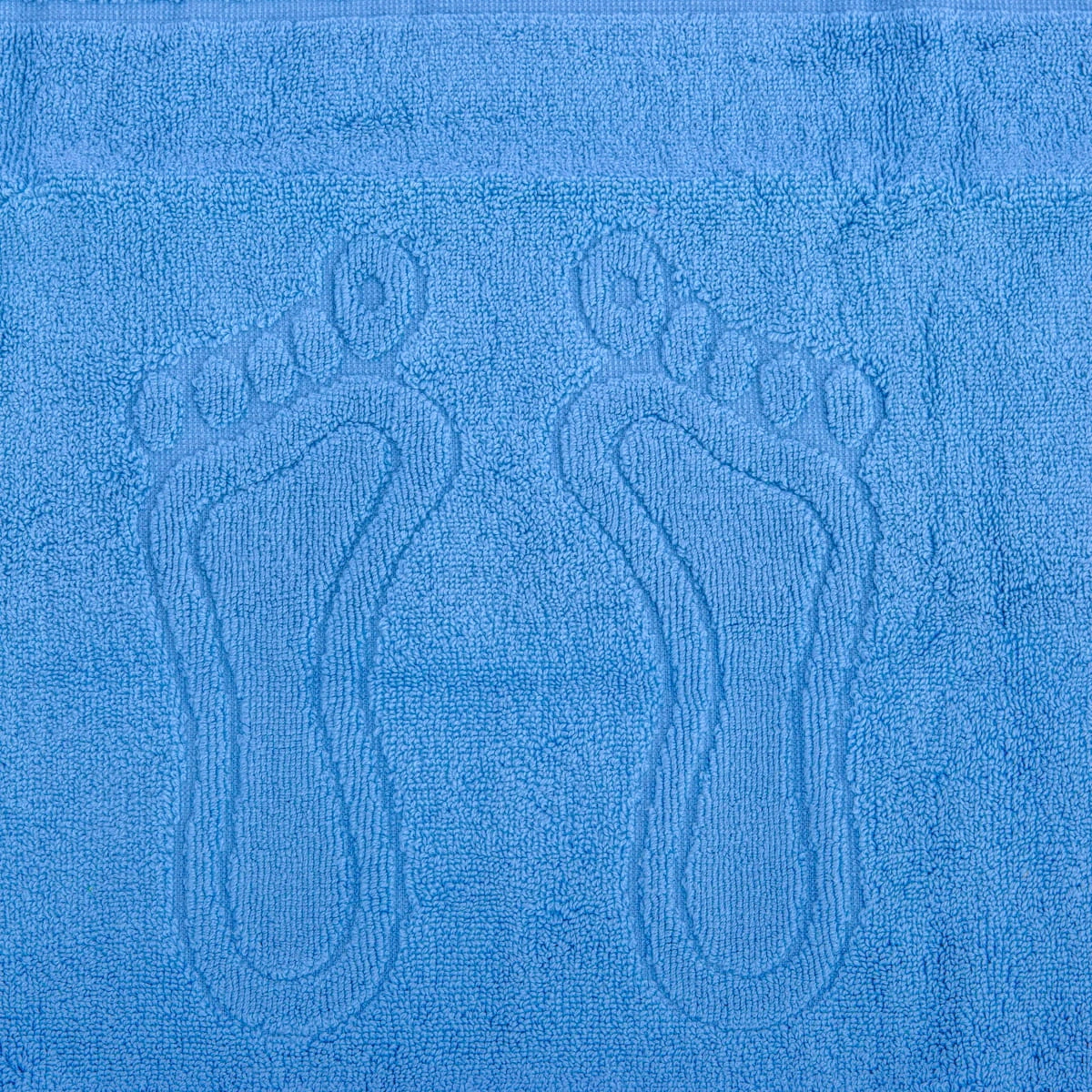 Profesjonalna stopka hotelowa Niebieska (50x70 cm) z tłoczonym wzorem stóp. Wykonana w technologii Double-Loop (podwójna pętelka) z bawełny pakistańskiej o gramaturze 650g/m². Zaprojektowana specjalnie dla stref Wellness i basenowych – wykazuje wysoką odporność na blaknięcie pod wpływem chemii basenowej, zachowując miękkość przez cały okres eksploatacji.