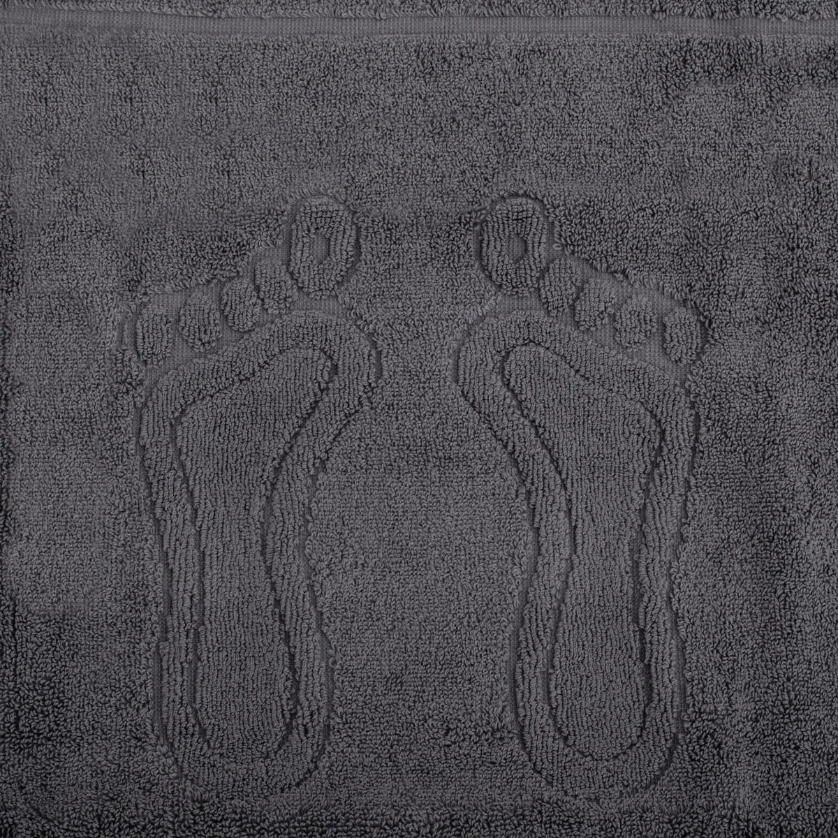 Ekskluzywna szara stopka hotelowa (50x70 cm) z tłoczonym wzorem stóp. Wykonana z wysokogatunkowej bawełny pakistańskiej o gramaturze 650g/m². Dzięki procesowi barwienia reaktywnego, kolor zachowuje głębię nawet po wielokrotnym praniu. System Double-Loop zapewnia maksymalną chłonność i izolację od podłoża w nowoczesnych łazienkach i strefach Wellness.